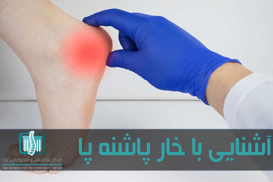 خار پاشنه آسیبی است که در اثر کارکردن زیاد پاها ایجاد میشود. در اثر این آسیب، در رباطهای کف پا یک رسوب کلسیم به صورت خار استخوانی شکل میگیرد. این خار استخوانی میتواند باعث درد و ناراحتی در کف پا مخصوصا هنگام راهرفتن و صبحها پس از بیدارشدن از خواب شود. خار پاشنه پا را با روشهای فیزیوتراپی به راحتی درمان میکنند اما در موارد خاصی هم نیاز به عمل جراحی برای برداشتن زائده استخوانی است.